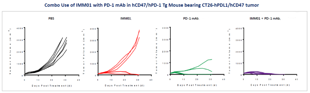 圖2. IMM01 聯(lián)合PD-1抗體的臨床前體內(nèi)藥效研究